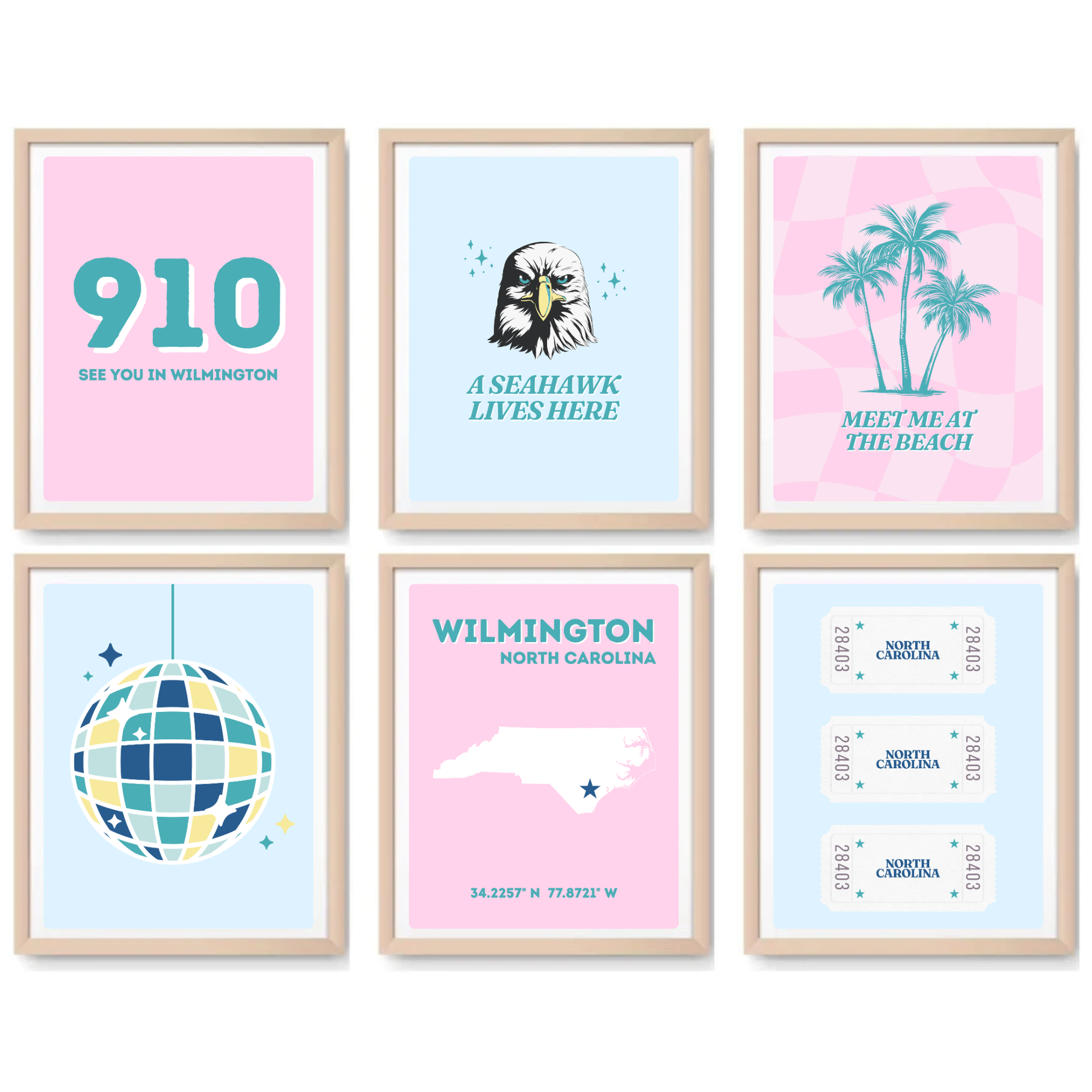UNC Wilmington inspired Digital Prints - Set of 6